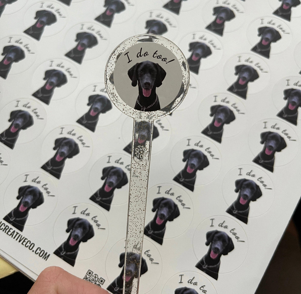 "Our stickers turned out amazing! We will be using them as envelope seals for our wedding invitations. We had a special request to have an outline of our dogs face and they are more than perfect. We have already received so many compliments. Highly, highly recommend!"